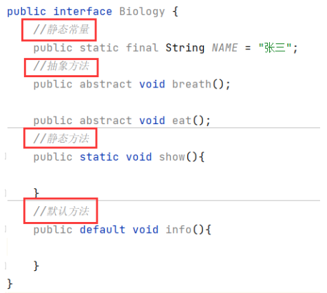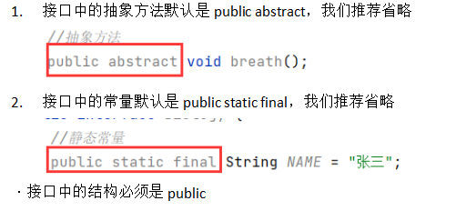 约定了返回值、访问权限、参数列表。需要在重写的时候去定义方法体