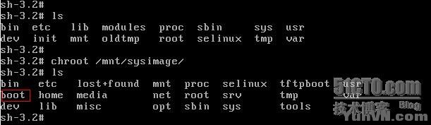 28、按照提示 输入 chroot /mnt/sysimage/,注意前后的差异是一个没有有boot目录,一个有。