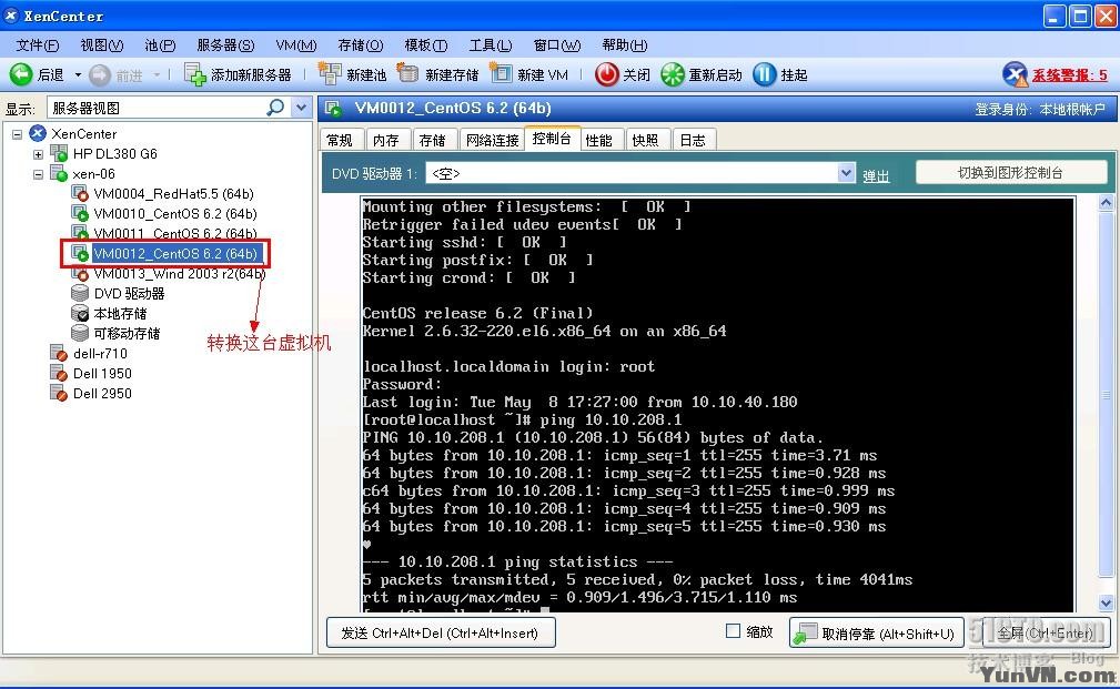 环境:Citrix XenServer6.0上的一台Linux虚拟机迁移到Vmware ESXi5.0上。我有6台ESXi服务器,所以是使用VMWare vCenter集中管理的。