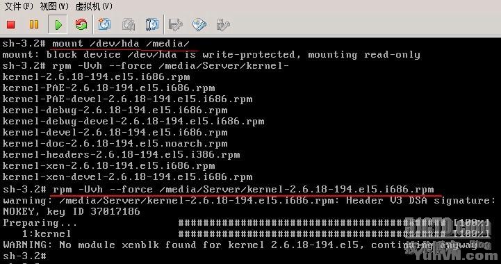 29、挂在 cdrom ,注意光盘所在的路径,系统版本不一样有可能路径也回不一样,强制更新非 xen 内核。