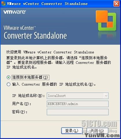 2、打开VMware Converter,一般都是直接连接本地,也可以输入IP/用户名/密码来连接。
