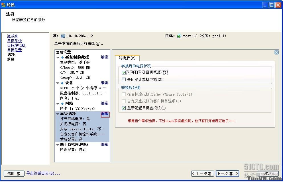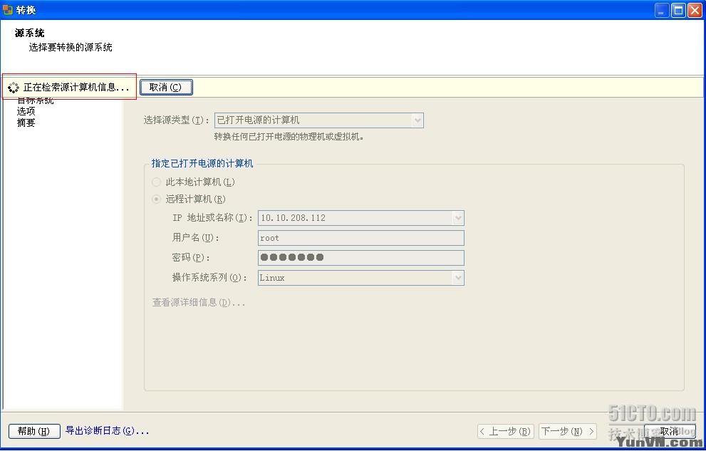 其实这种方式跟P2V一样,它把远程的虚拟机当做是一台物理服务器了,区别就在于虚拟机的文件格式会不同,后面有需要修改说明。