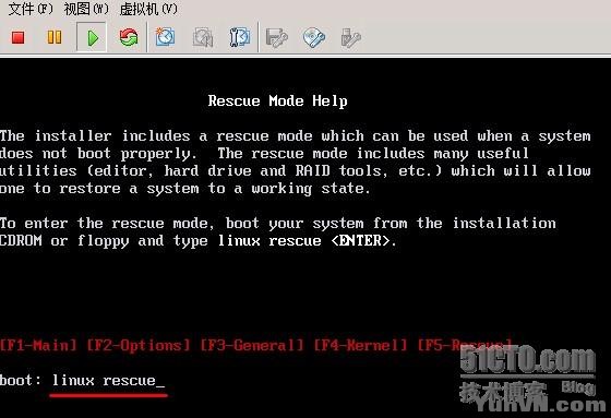 22、进入Linux系统光盘中,输入 linux rescue 进入救援模式。