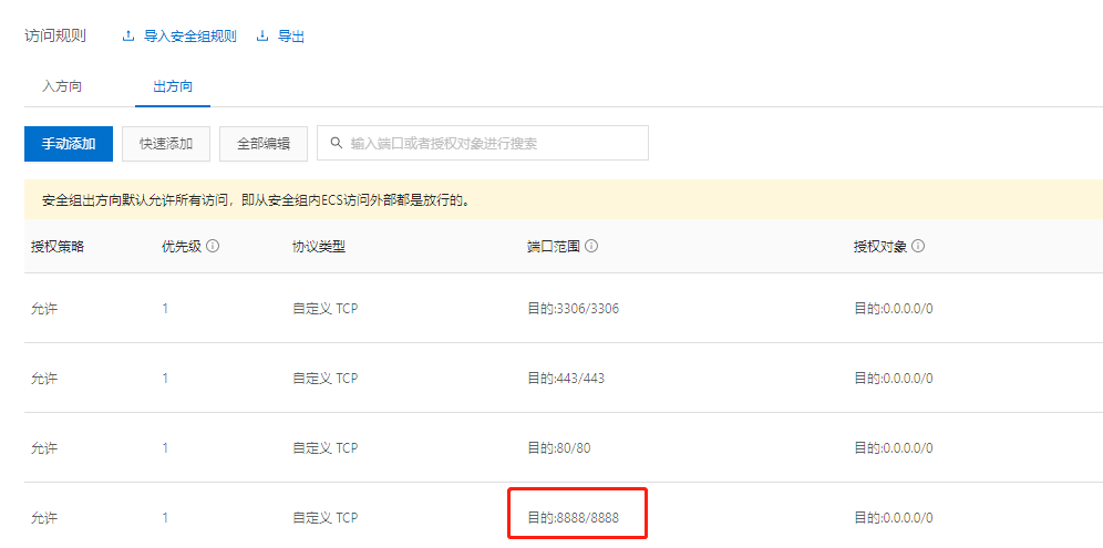 在阿里云服务器上面找到、网络与安全->安全组->配置规则