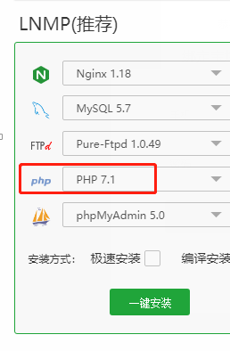 安装 PHP 7.1 版本 重要 重要 重要,点击极速安装