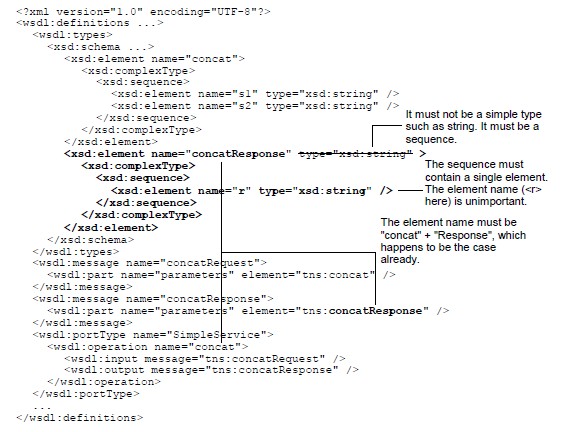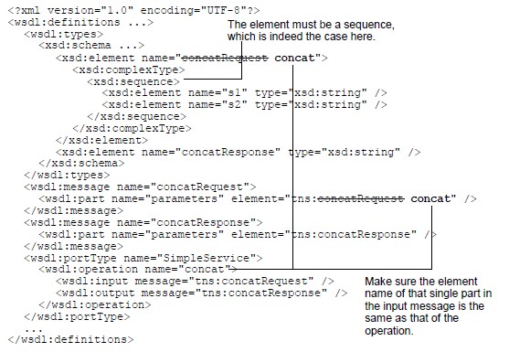 61 <wsdl:part name="parameters" element="tns:concatResponse" />