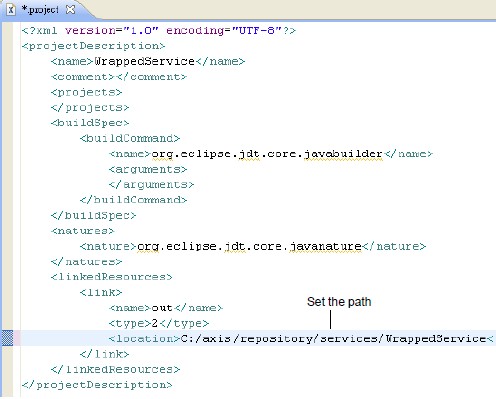 把.project 文件中的路径改为c:\axis\repository\services\WrappedService: