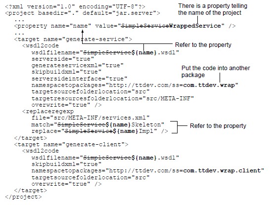 任务<wsdl2code>支持封装协定(wrapped convention)这样服务实现类可以接收多个参数。如果客户理解这种协定可以通过多个参数进行服务的调用。对于那些不理解这种协定的,依然可以按照常规的文档类型服务进行调用。