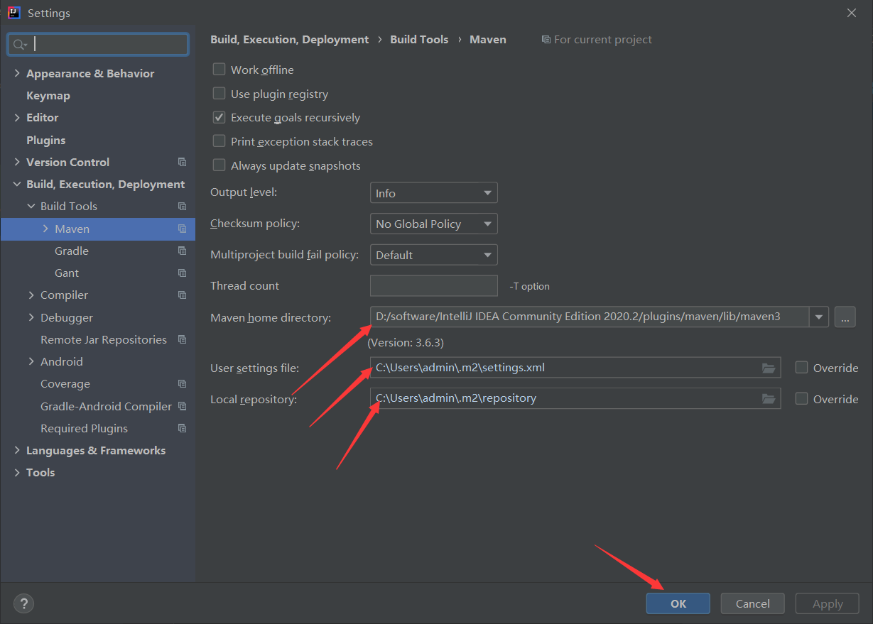Maven home directory 换成自己的 maven 位置