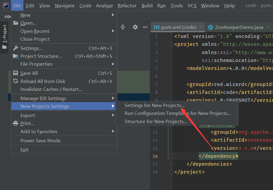点击 File, New Project Settings, Settings for new projects