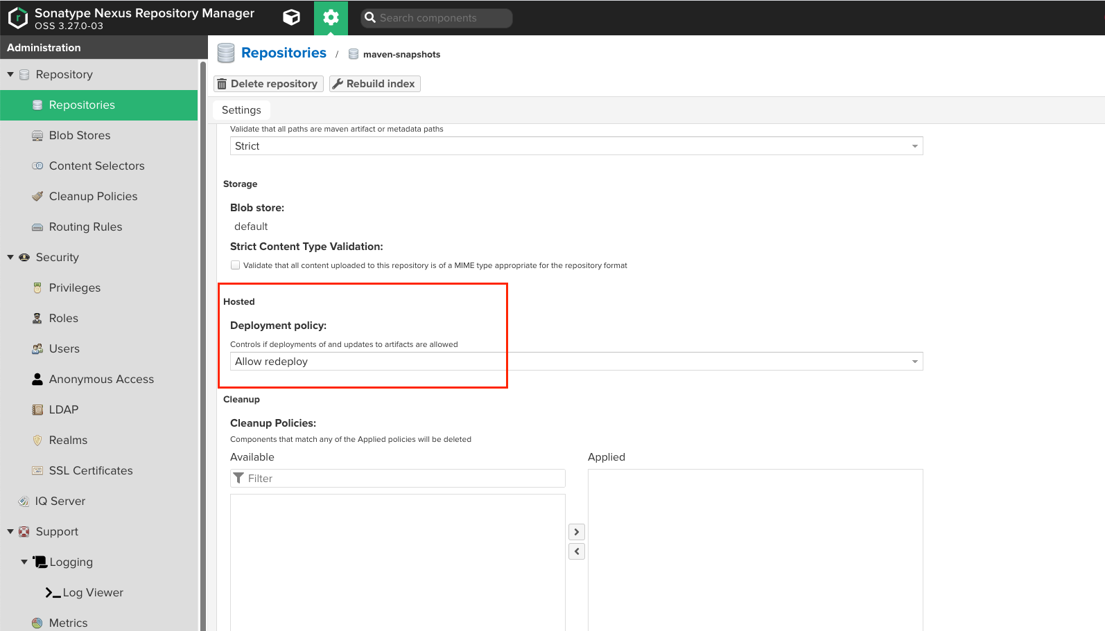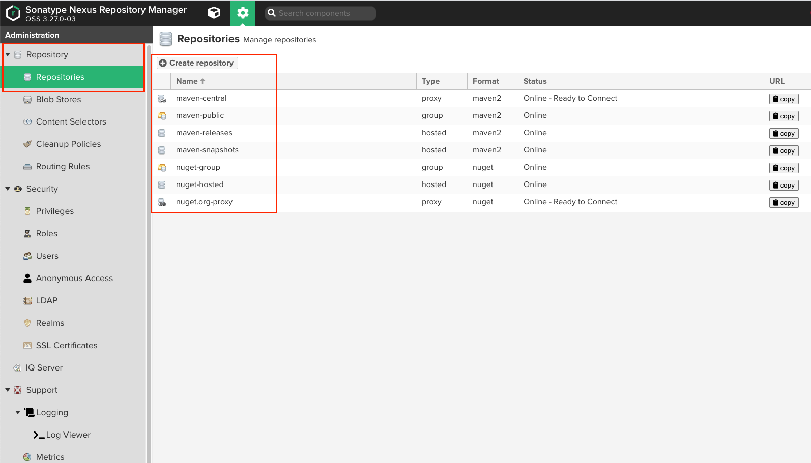 可以在此页面创建私服仓库,也可以使用默认的仓库。