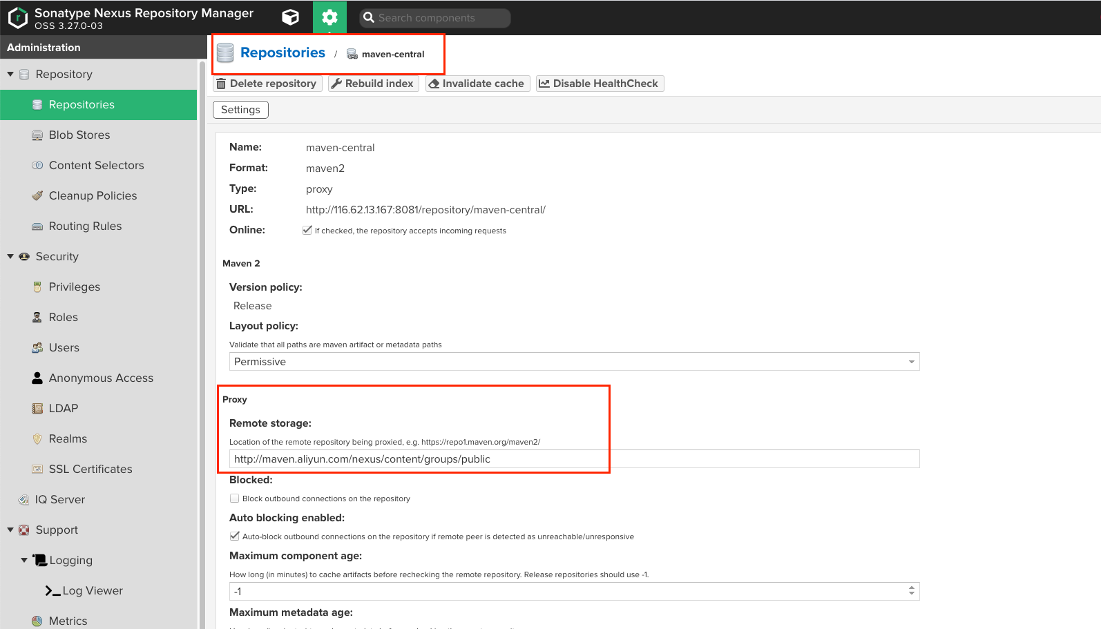 将私服的中央仓库的地址改为aliyun的中央仓库地址