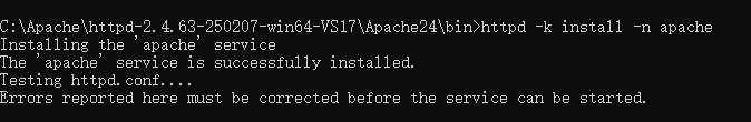 httpd -k install -n apache