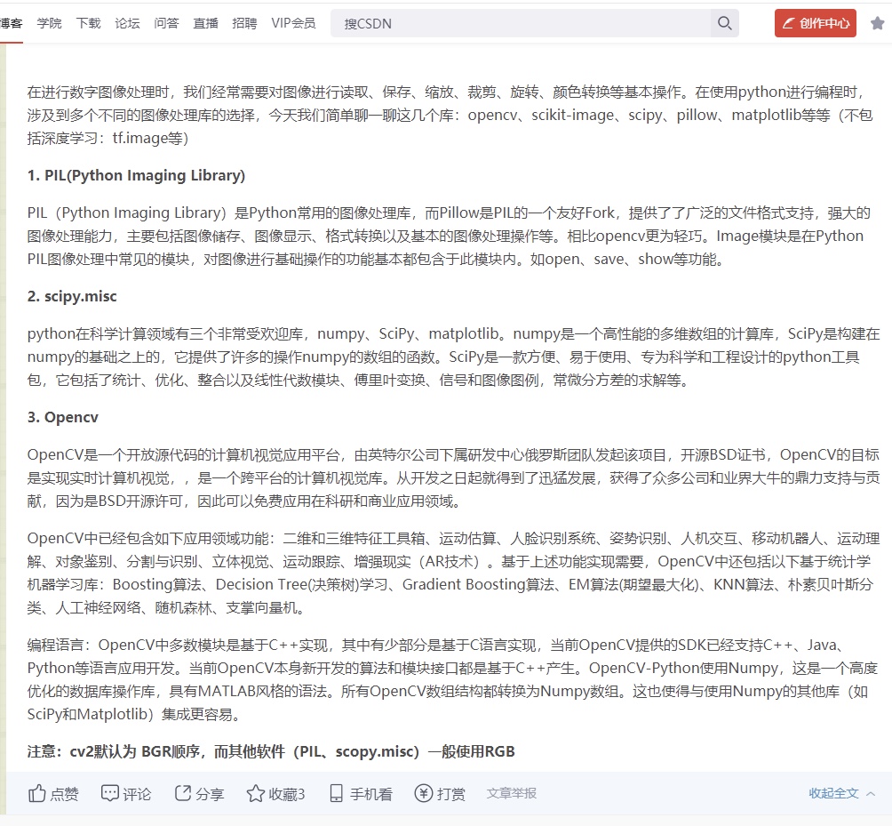 从网络资料中我了解到一般情况下,opencv是图像处理比较理想的选择,但是在一定情况下,安装opencv是需要花费一点时间和力气,而Python第三方图像库PIL封装的很好,是按照面向对象的思维封装的,比较好用,而且相对于opencv封装的比较方便,于是我在网络上查找资料了解如何使用PIL: