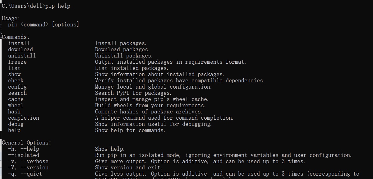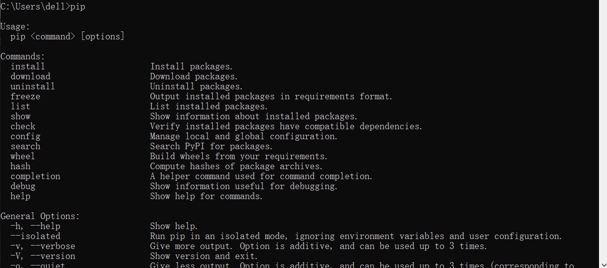 - 查阅资料进一步了解pip 安装命令的参数 运用相关命令查询本地计算机已经安装的包;