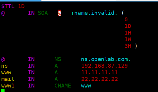 zone "openlab.com" IN { # 双引号中输入,表示管理那个区域