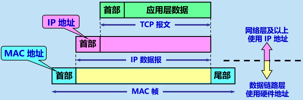 可以发现,在此过程中IP地址和MAC地址都是必要的,两者都不能单独来实现互联网中唯一的两台主机之间的通信,IP地址能让我们找到目的主机所在的子网,MAC地址能让我们在子网中找到唯一的那台目的主机,实现信息交换。