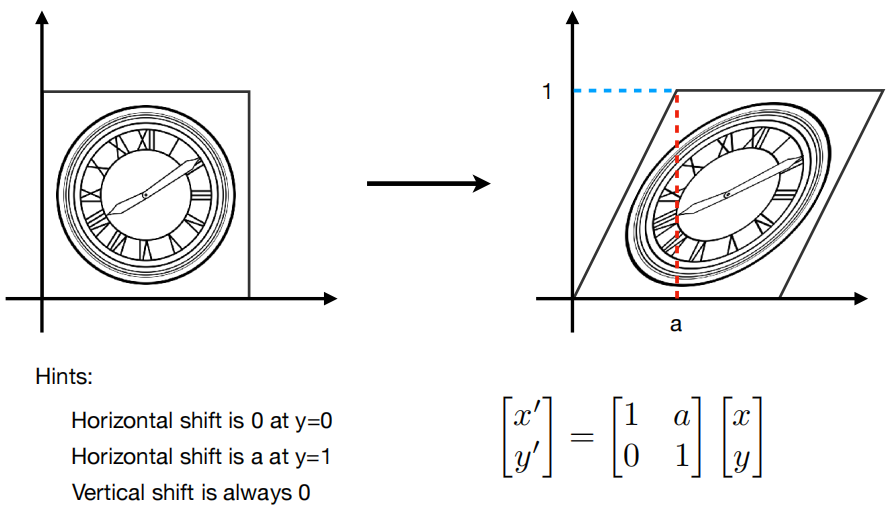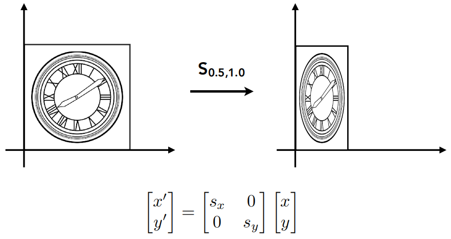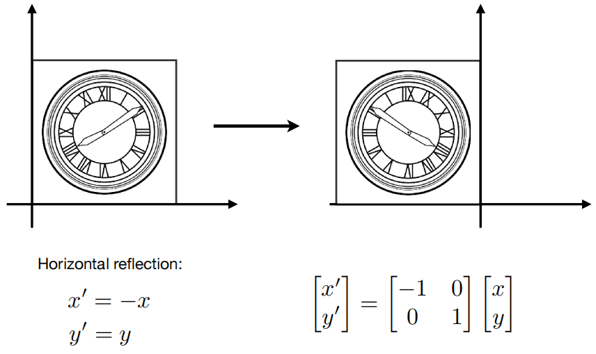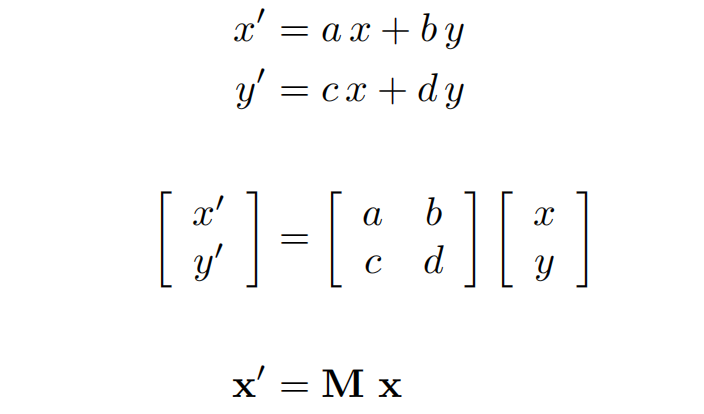 以上的变换都是线性变换,即都可用下面的 2 * 2 的变换矩阵来表示:
