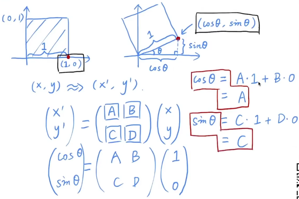 推导过程可以拿右下角的点和左上角的点的前后变化,列方程求解。下面是拿右下角的点推导出矩阵第一列的值。