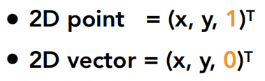 比如二维的点加上一个维度,是 1;二维的向量加上一个维度,是 0。