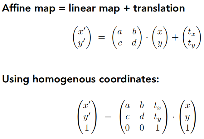 我们将需要进行平移变换的变换称为仿射变换(Affine Transformations)