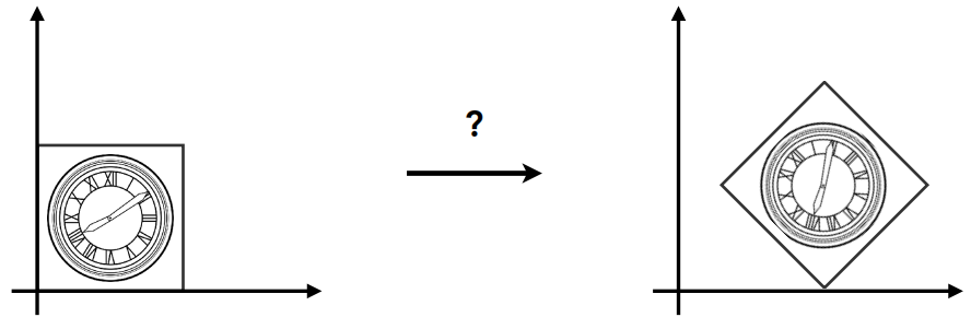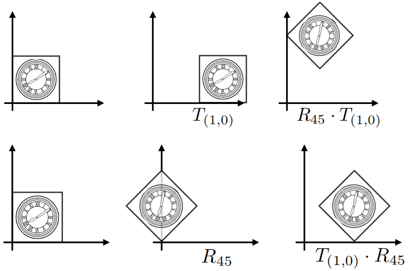 上图的变换不是简单通过一个变换就能实现的,我们有两种思路,先平移再旋转,或先旋转再平移。