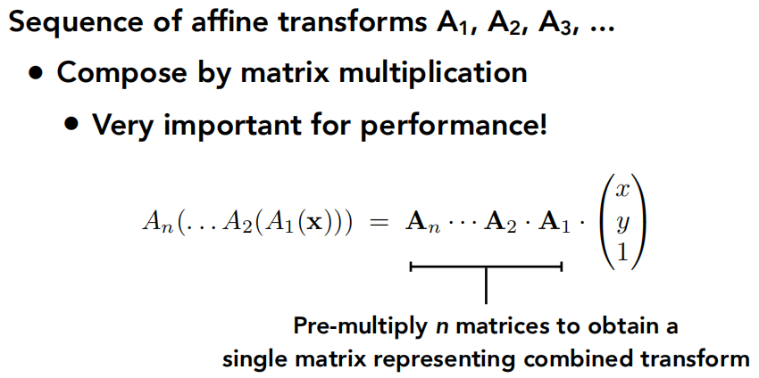 考虑到变换矩阵都是 3 * 3 的,根据结合律,无论前面进行了多少次变换,最终得到的都是一个 3 * 3 的矩阵。