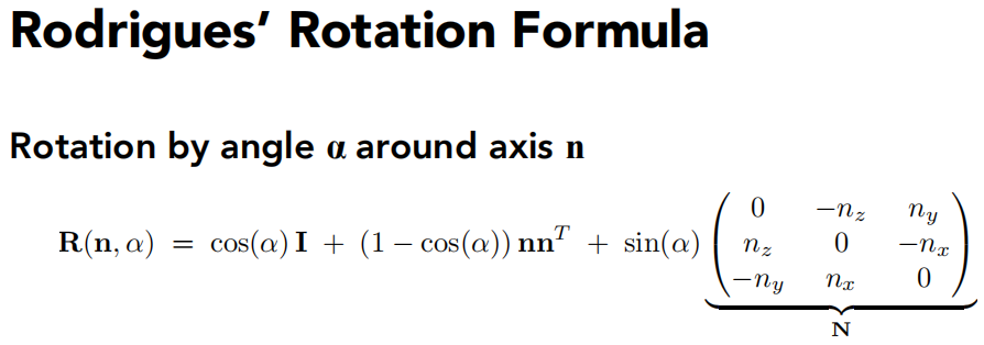 绕轴 n 旋转 α 角度,但 n 只是一个向量,因此如果说绕某个轴旋转,则是默认过原点的,即轴的起点在原点上。