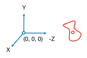 那么进一步思考,直接将相机放在一个永远固定的原点位置上,让场景中的所有物体进行运动。相机永远朝向 -z 方向上。