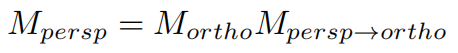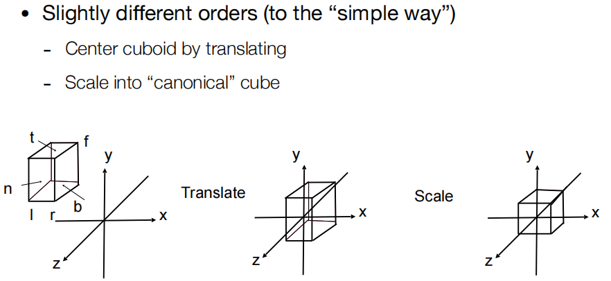 也很直观,先做一个平移,再做一个缩放。为什么是 2,因为 [-1, 1] 覆盖的范围是 2,然后除以原本覆盖的范围,比如远和近是 n - f 。