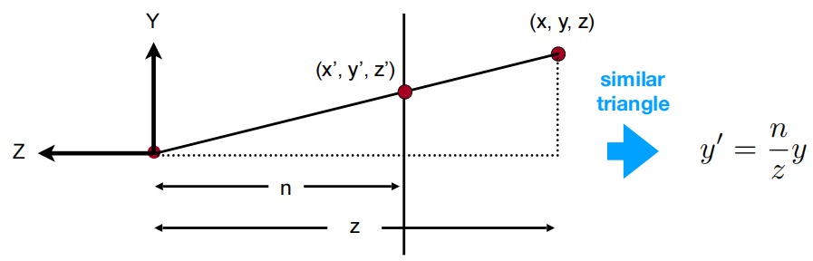 任意一个点它会被如何挤压,通过相似三角形是清楚的。上面表示的是 y。x 是同样的道理。