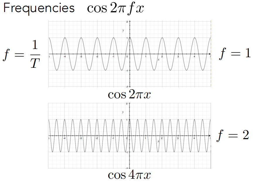上面两个函数不同是因为它们的频率不同,下面那个频率大的明显变化要快。