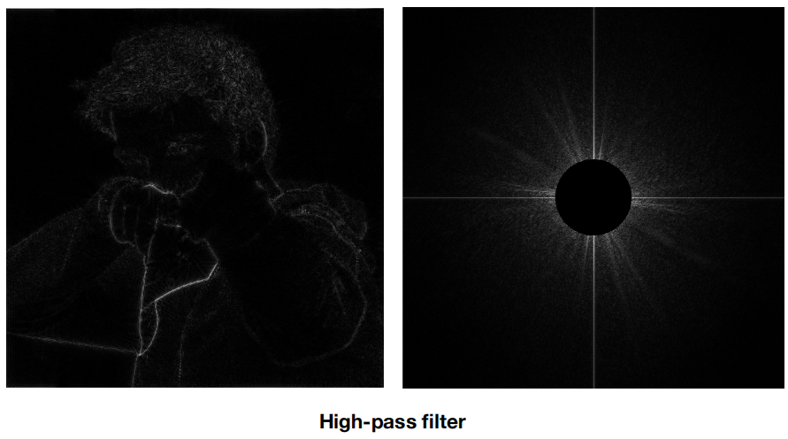 高通滤波,将低频的信号完全抹掉了,显示出来的就是图像的轮廓细节信息。信号变化特别大,那就是高频信息。
