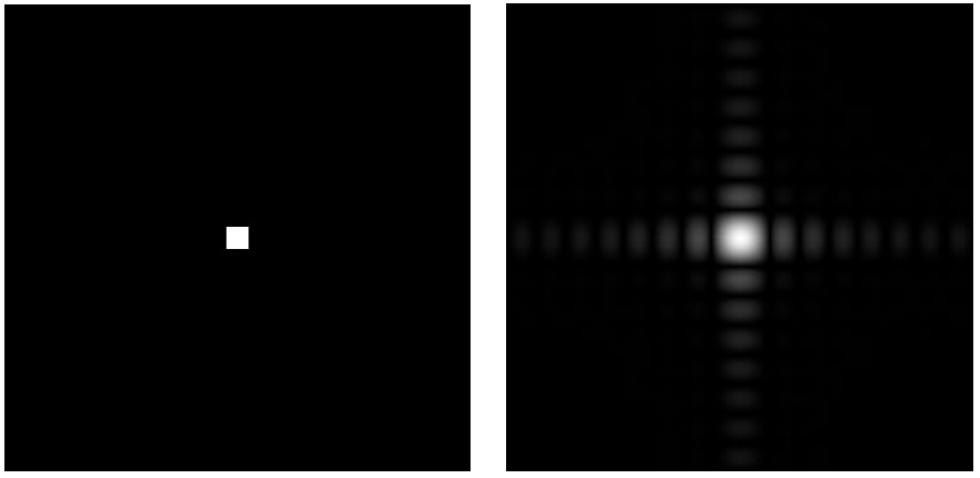 为什么会有水平的和垂直的两条线?我们在分析一个信号的时候,我们会认为它是一个周期性重复的信号,那么对于不周期性重复的信息,比如这张照片,我们会认为,到了右边界它又会重复它左边的内容,就好像这张图它在水平方向上叠了无限多个,竖直方向上也叠了无限多个。很少有图像左边界和右边界完全一致的,那么在边界上会发生剧烈的信号变化,也就会产生一个极其高的高频。