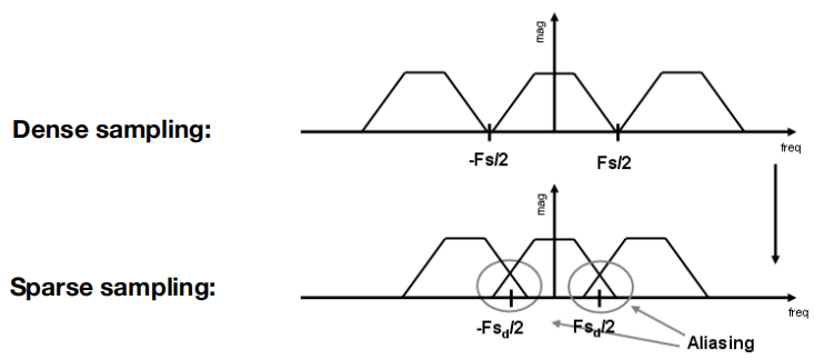 假设我原始信号是一个如上图梯形的形状,如果我按照良好的步长进行复制粘贴,就会得到第一幅图那样;而如果我采样率不足,或者说我采样得不够快,那么我复制粘贴的间隔就会非常小,现在我原始的信号和我复制粘贴的信号混在一块了,在这种情况下,就发生了走样。