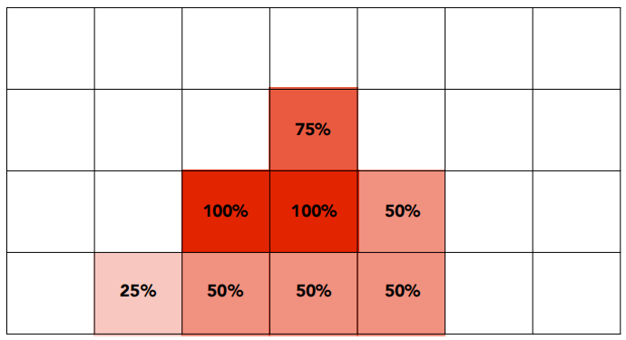 三角形覆盖面,对其求一个平均,比如第一副图,三角形覆盖了 1 / 8,那我就赋予一个 7 / 8 的亮度。