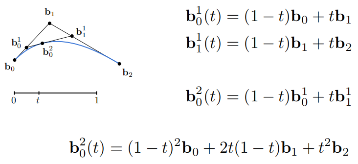 示例:三个控制点得到的方程。是点 b0、点 b1、点 b2 的一个组合,很符合最早的分析。