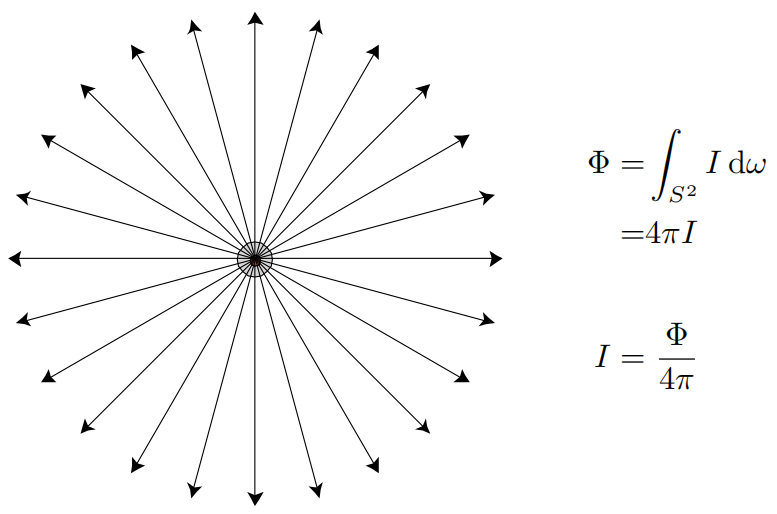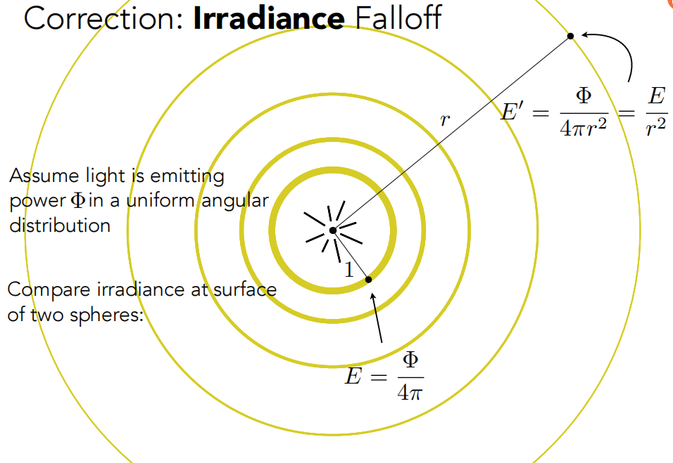 用 Irradiance 修正之前的概念,单位面积上接收到的能量。这里并不是 Itensity 在衰减,而是 Irradiance 在衰减,Intensity 始终没有变。