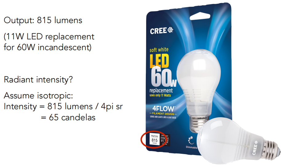 假设这个灯往四面八方所辐射出来的能量是一样的话,那我可以计算任意一个方向上的 intensity 是多少。