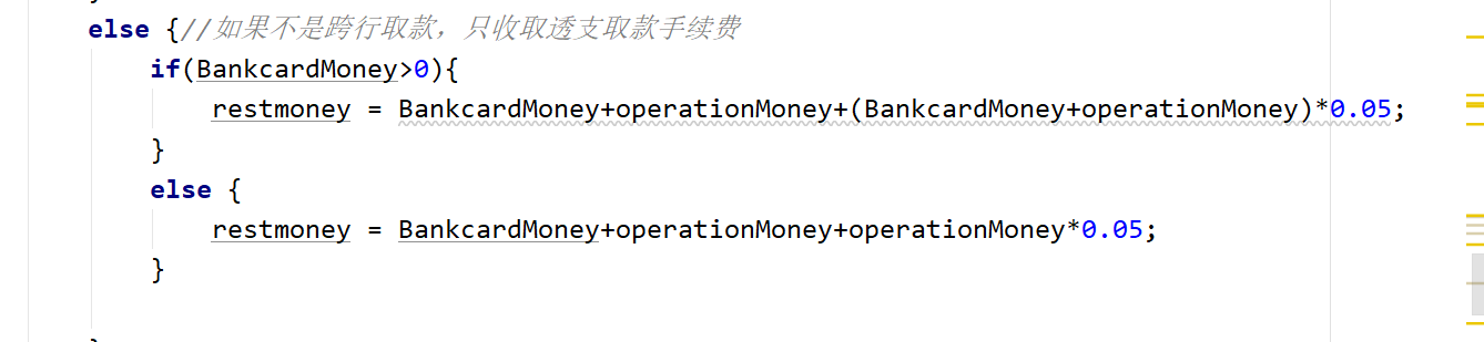 然后则按题目要求进行操作,如果是透支取款收取手续费,跨行取款也要收取手续费