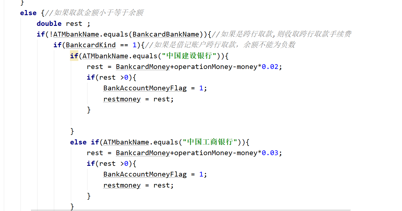 题目集9时8的进一步迭代要求可以实现跨行取款和透支取款,贷记账号可以透支,借记账户不能透支,跨行取款和透支取款都需要手续费。要实现透支取款则需要在银行账户的属性中增加账户类型,判断该账号能否透支。