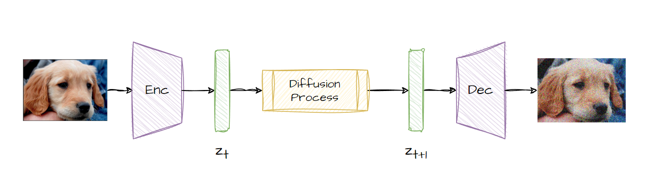 The authors also note that instead of adding noise directly to the image, we can encode the image and do the same operation in a latent space instead and then decode the image later on. This HUGELY reduces the computational power required to train and use diffusion models.
