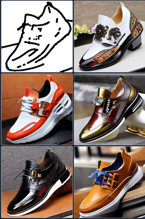 Control net can be combined with dream booth, textual inversion, and other stable diffusion models to generate finely controlled images of desired products. Here is an example of generating shoe images using nothing but scribble: