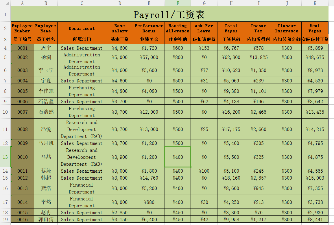 计算机基础作业 工资表