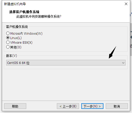 上方选择 Linux, 下方选择 CentOS 6 64位
