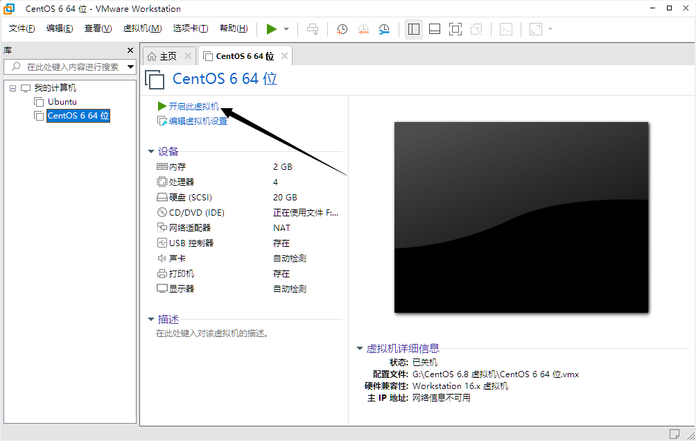 配置 镜像文件, 选择上方虚拟机, 点击设置