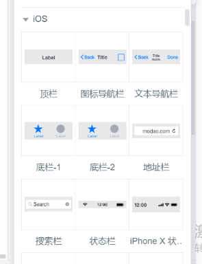 工具栏分类下包含的组件为标题栏、底栏、搜索框、标签、空白栏。