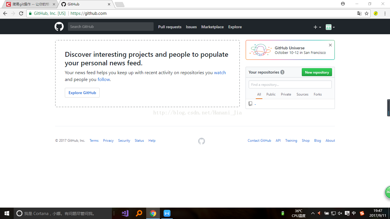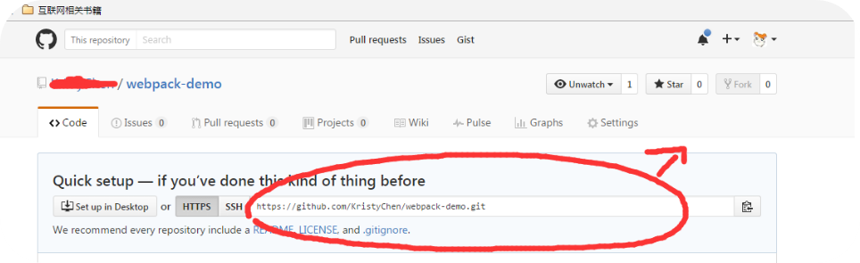 5.点击 “Create repository”跳转到一个连接,如下红色圈获取到本项目的github地址
