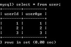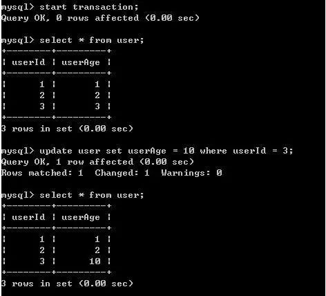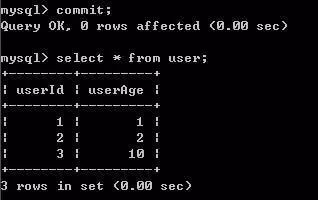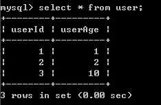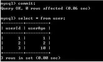 3)A 再对 user 表进行查询,发现记录没有受到影响