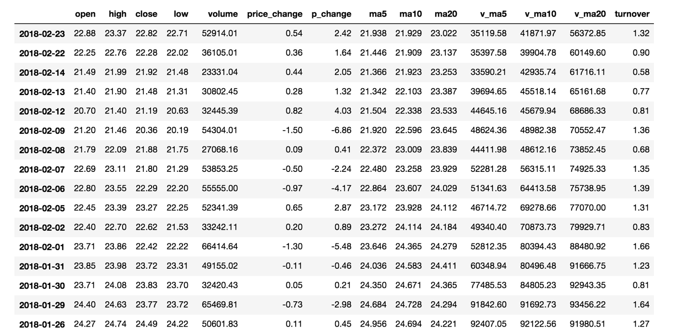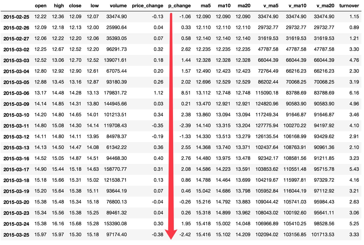 data = data.T # series type(data['股票_0']) pandas.core.series.Series # 这一步相当于是series去获取行索引的值 data['股票_0']['2017-01-02'] -0.18753158283513574